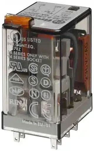 The 55.32.9.024.0040 is a Plug-in mount General-purpose Relay with a DC coil. This 55 series relay has 2CO (DPDT) cadmium-free standard AgNi contacts and lockable test buttons with mechanical indicators. Suitable for 94-series sockets and comes with a European patent.