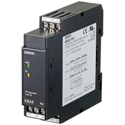 OMRON K8AK-PH1 Monitoring relay 22.5mm wide, simultaneous monitoring of phase sequence and loss in 3phase 3wire systems, One DPDT.